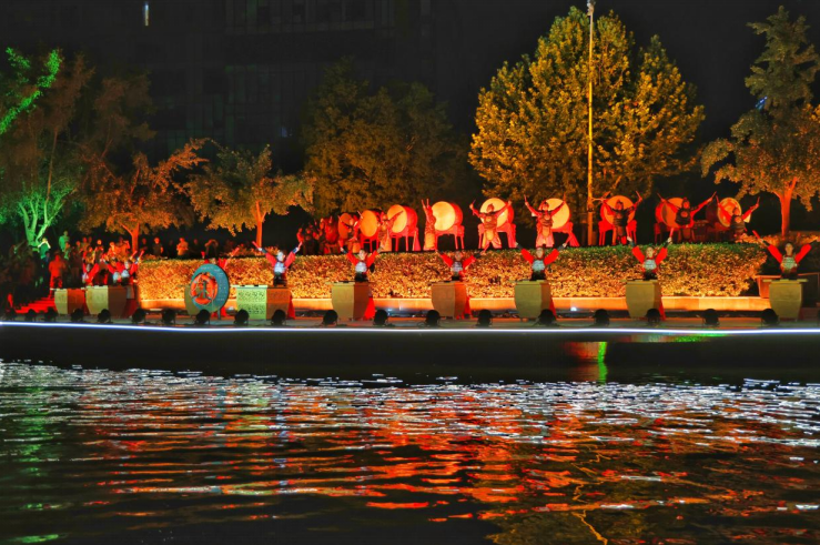 当晚,郑州如意湖码头人潮涌动。晚8时许,随着一阵悠扬的笛声飘来,多位身着古装、演绎不同角色的演员,在水雾光影中翩翩而来,以充满古韵的精彩演绎赢得了现场观众的阵阵掌声。
