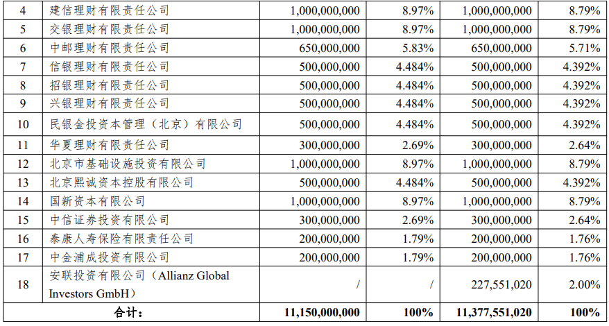 根据方案,本次新发行的股份全部由新增股东安联投资认购。安联投资拟出资人民币2.84亿元(其中人民币2.28亿元计入公司注册资本),认购公司本次发行的全部2.28亿股股份。