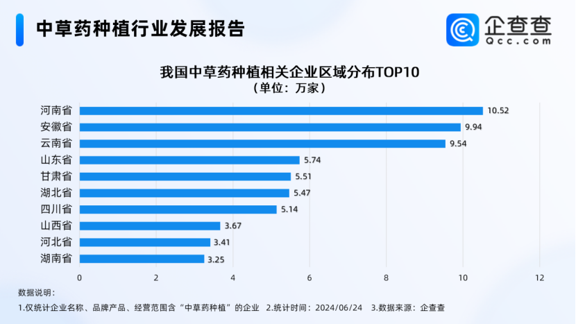 【大河财立方 记者 杨霄 实习生 陈星冉 文图】国内中药材市场再现涨价潮,哪些省份会因此直接受益?6月24日,企查查发布数据显示,过往10年,国内中草药种植相关企业已经连续10年增长。在国内中草药企区域分布方面,截至上年末,河南药企凭借10.52万家注册量,居全国第一。此外,中华药都亳州的药企分布量居全国第一。