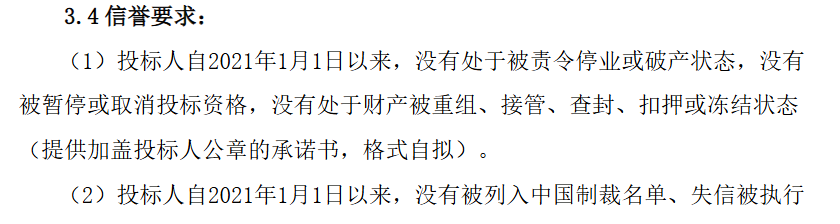 投标人资格要求如下: