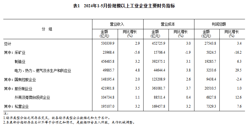 数据显示,1—5月份,全国规模以上工业企业实现利润总额27543.8亿元,同比增长3.4%。