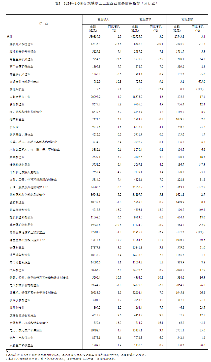 【大河财立方消息】6月27日,国家统计局公布了2024年1—5月份全国规模以上工业企业利润相关数据。