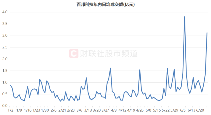 注:百邦科技年内日均成交额(截至6月26日数据)