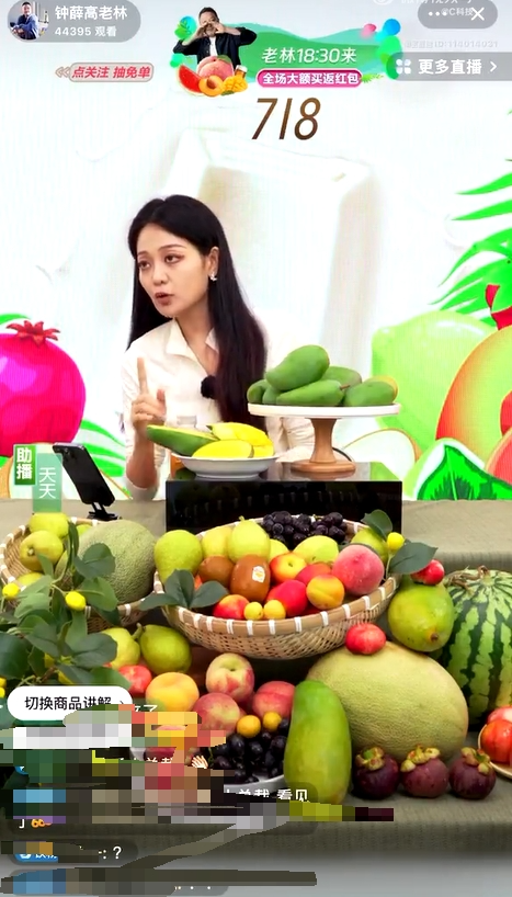 直播录屏显示,账号“钟薛高老林”在直播推荐水果产品时,一名白衣女主播正快速介绍产品,突然身体开始不受控制左右摇晃,手臂下意识支撑桌面,但身体很快失去平衡向下倒去,将身后的椅子带倒。女主播倒下的瞬间,依旧在快速念台词,但声音显得疲惫、飘忽。