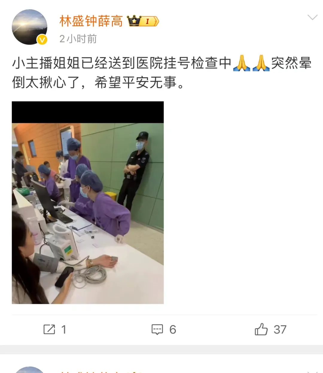 钟薛高创始人林盛也在微博回应:“小主播姐姐已经送到医院挂号检查中,突然晕倒太揪心了,希望平安无事。”