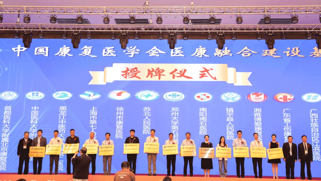 学会领导为中国康复医学会医康融合建设基地单位授牌。