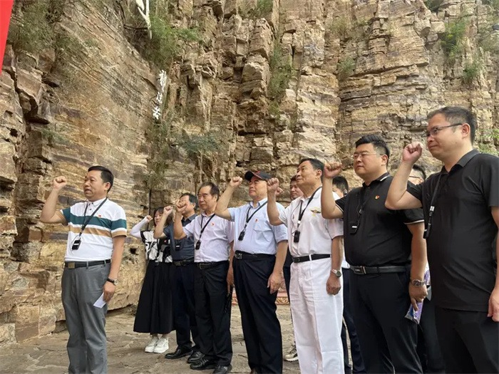 当天上午,在《祖国》杂志社编委会执行主任李和平、社长龚泓铭、执行社长兼总编辑程四化的带领下,参观人员一行来到红旗渠风景区,穿过象征红旗渠精神的“红飘带”,走过蜿蜒曲折的“水长城”,来到红旗渠咽喉工程青年洞,真切感受林县人民劈山开渠的壮举与艰辛,并组织全体党员重温入党誓词。