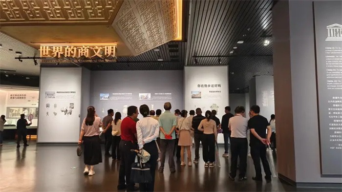 7月2日上午,大家乘车来到位于安阳市的殷墟博物馆新馆。博物馆分为三个主题,一层主题为“探索商文明”,以殷墟的起点和基石,追溯整个商文明的探索历程;二层主题为“伟大的商文明”,商文明巩固了以中原为中心的天下体系,形成了后世中国统一多民族国家的基本版图;三层主题为“世界的商文明”,商文明是人类社会发展进步的重要成果,具有全球意义,青铜器、玉器、甲骨、白陶等商代文物流散至海外美、日、英、法、德等数十个国家,被60余家收藏单位保护、研究、利用,商文明传播至远。