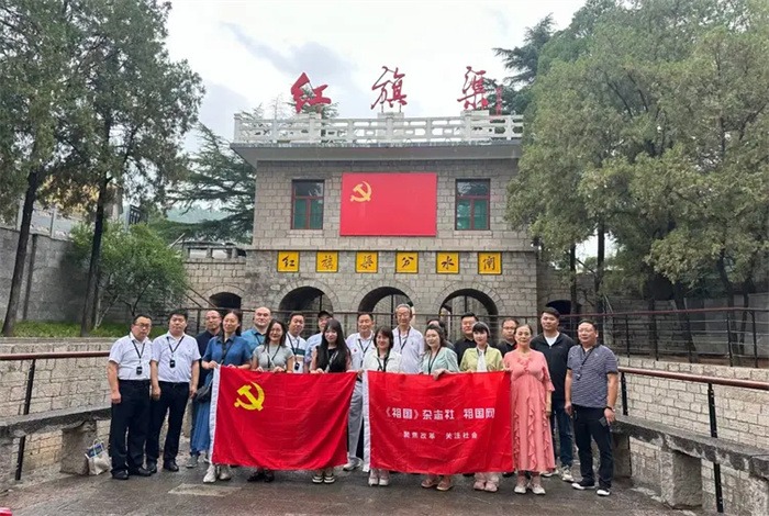 为庆祝中国共产党成立103周年,进一步推进党纪学习教育,引导党员干部增强党性观念,激发工作热情,7月1日,《祖国》杂志社组织党员、积极分子和部分业务骨干赴河南省林州市红旗渠实地参观学习,开展 “高举伟大旗帜 弘扬红旗渠精神”主题党日活动。活动邀请了民进中央原专职副主席、全国人大教科文卫委员会原副主任王佐书,国家军事博物馆原馆长郭得河少将,国家发改委基建中心原书记戴首君等一同参观学习。