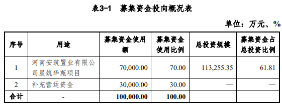 据募集说明书显示,该债券由中合中小企业融资担保股份有限公司提供全额无条件不可撤销连带责任保证担保。此次债券募集资金总额为不超过10亿元,其中7亿元拟用于河南安筑置业有限公司星筑华苑项目,3亿元拟用于补充公司营运资金。