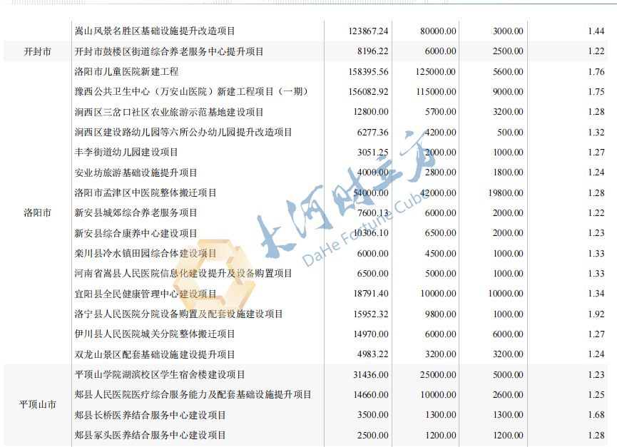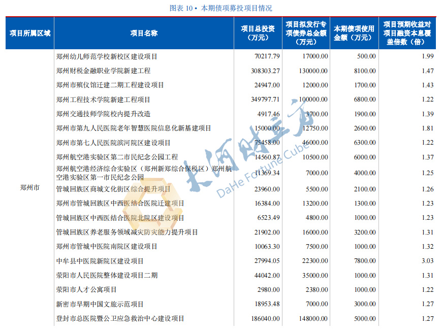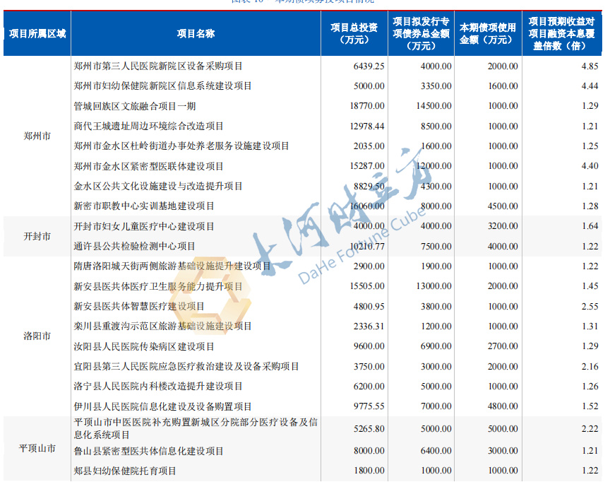 2024 年河南省社会事业专项债券(三期)-2024 年河南省政府专项债券(二十一期)发行总额3.07亿元,期限10年。涉及11个募投项目。
