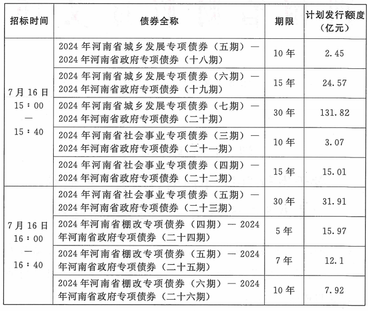 2024年河南省城乡发展专项债券(七期)-2024 年河南省政府专项债券(二十期)发行总额131.82亿元,期限30年。涉及285个募投项目。