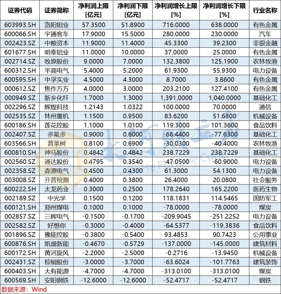 根据29家豫股业绩预告,净利润增长主要来自有色金属、汽车、生物医药等领域。