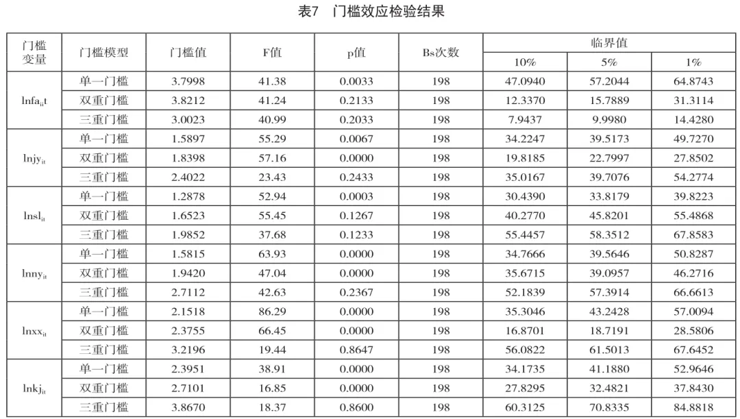 本研究假设基础设施投资对经济增长的作用存在非线性特征,可能会存在门槛效应,为进一步研究基础设施投资与经济增长之间的非线性特征,使用STATA16.0对面板门槛值的存在性进行检验。