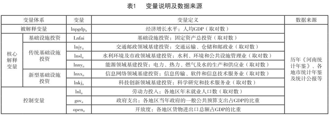 模型构建:基于经济增长模型,将传统和新型基础设施投资纳入经济增长的分析框架来研究基础设施投资对经济增长的影响,构建以下双门槛面板模型: