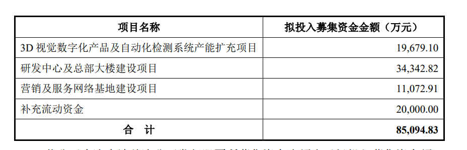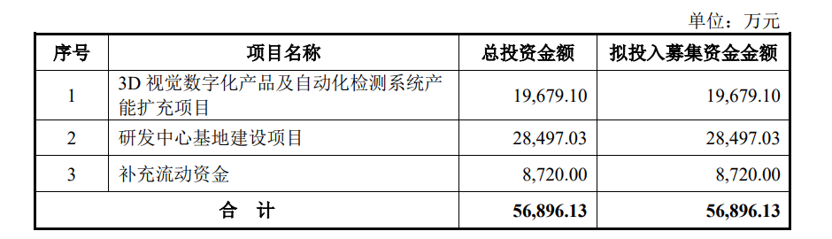 其2023年6月的招股书显示,思看科技的募资额为8.51亿元,募资净额将用于3D视觉数字化产品及自动化检测系统产能扩充项目、研发中心及总部大楼建设项目、营销及服务网络基地建设项目、补充流动资金。