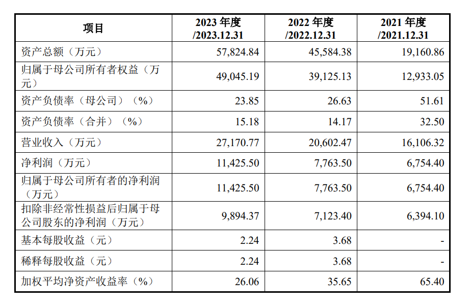 2021至2023年,思看科技营业收入分别为1.61亿元、2.06亿元、2.72亿元,同比增长27.92%、31.88%;净利润分别为0.68亿元、0.78亿元、1.14亿元,同比增长14.94%、47.17%,业绩连续三年稳步增长。