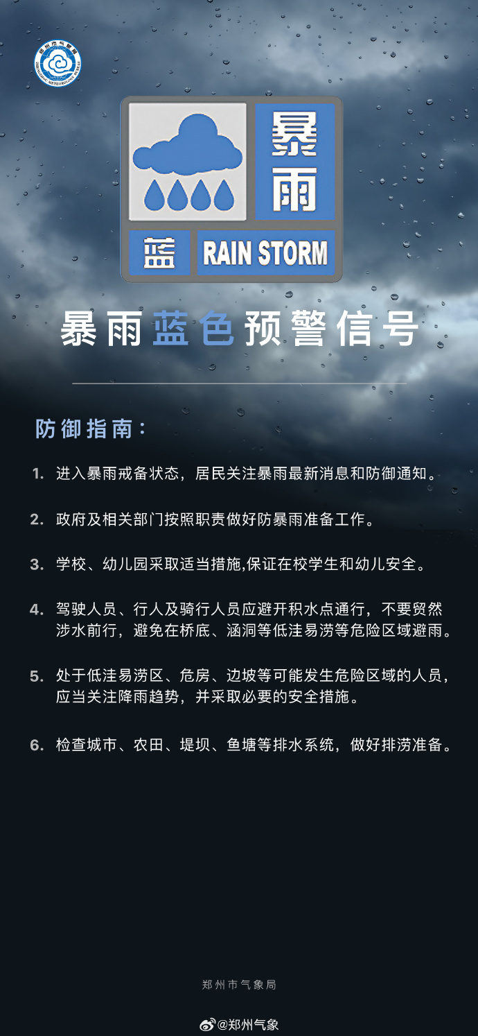 暴雨蓝色预警!郑州这些地方降水量已超40毫米,未来仍将持续