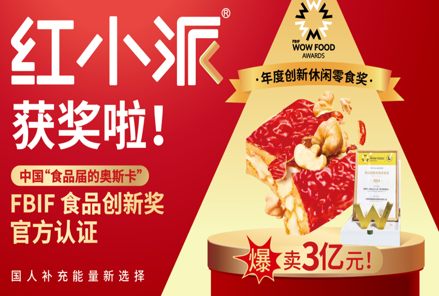 6月25日,红小派荣获被誉为“食品界奥斯卡”的FBIF年度创新休闲零食奖。