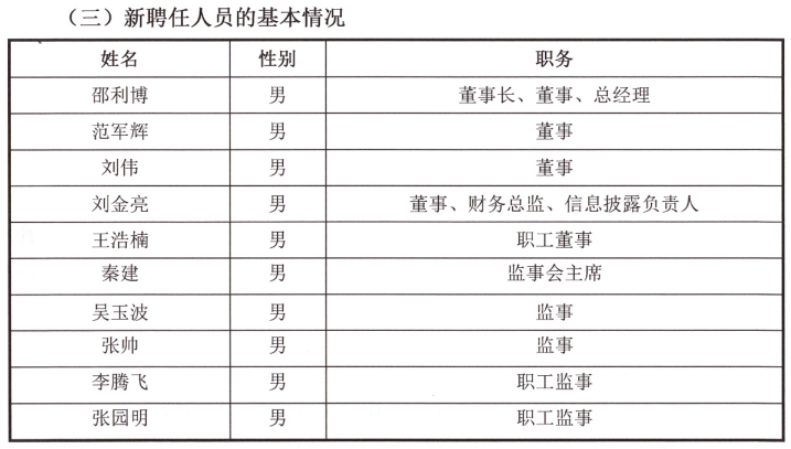 8月13日,经公司股东会会议审议,巩义市新型城镇建设有限公司聘任邵利博、范军辉、刘伟、刘金亮、王浩楠为公司董事,聘任秦健、张帅、吴玉波、张园明、李腾飞为公司监事。聘任邵利博为公司董事长,担任法定代表人。