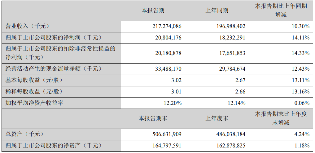 今年上半年,美的集团实现营业收入2172.74亿元,同比增长10.30%;实现归母净利润208.04亿元,同比增长14.11%。