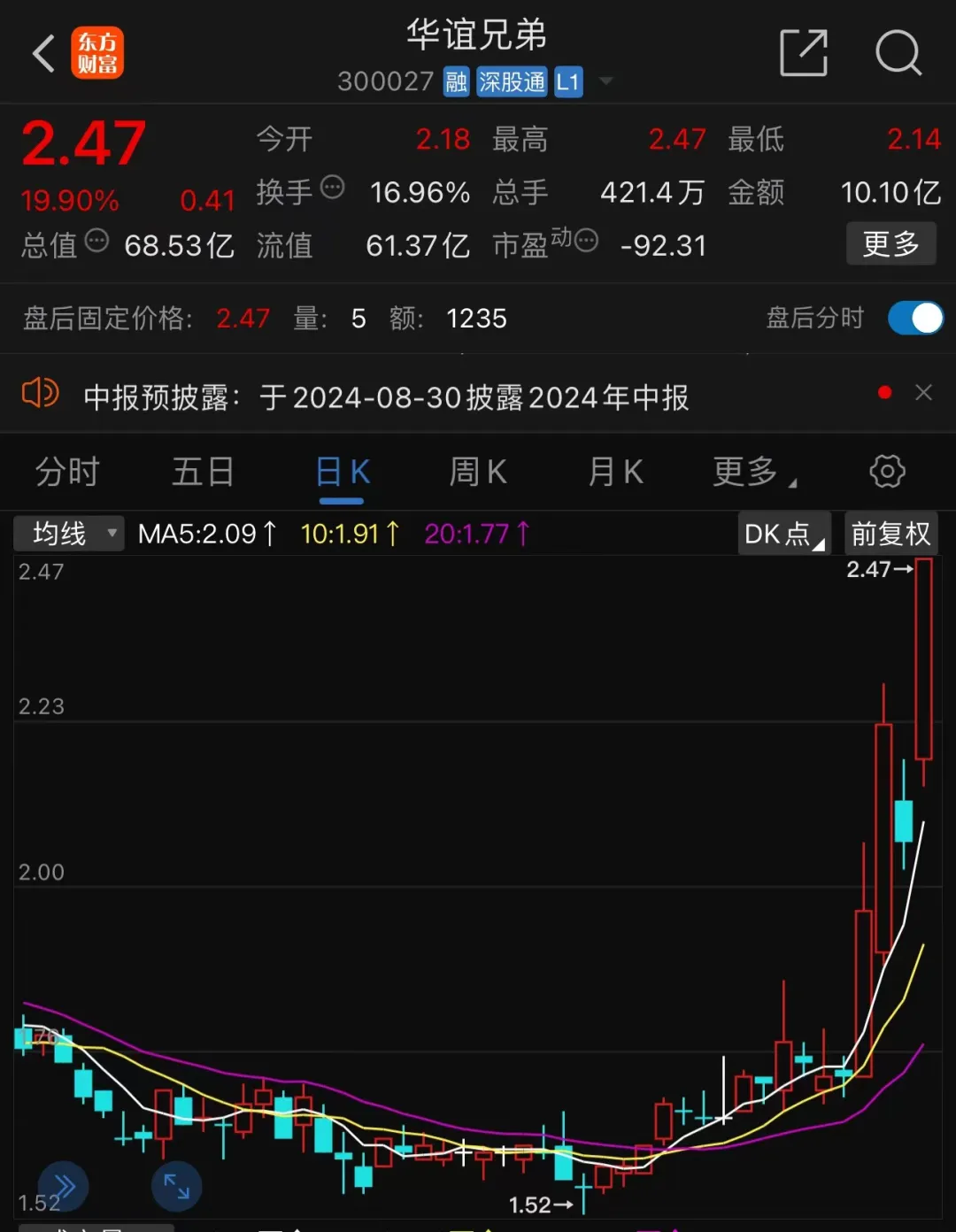 A股公司华谊兄弟持有英雄互娱约7418.36万股,约占英雄互娱总股本的5.17%。近期,华谊兄弟股价持续大涨,8月19日华谊兄弟更是20%涨停。