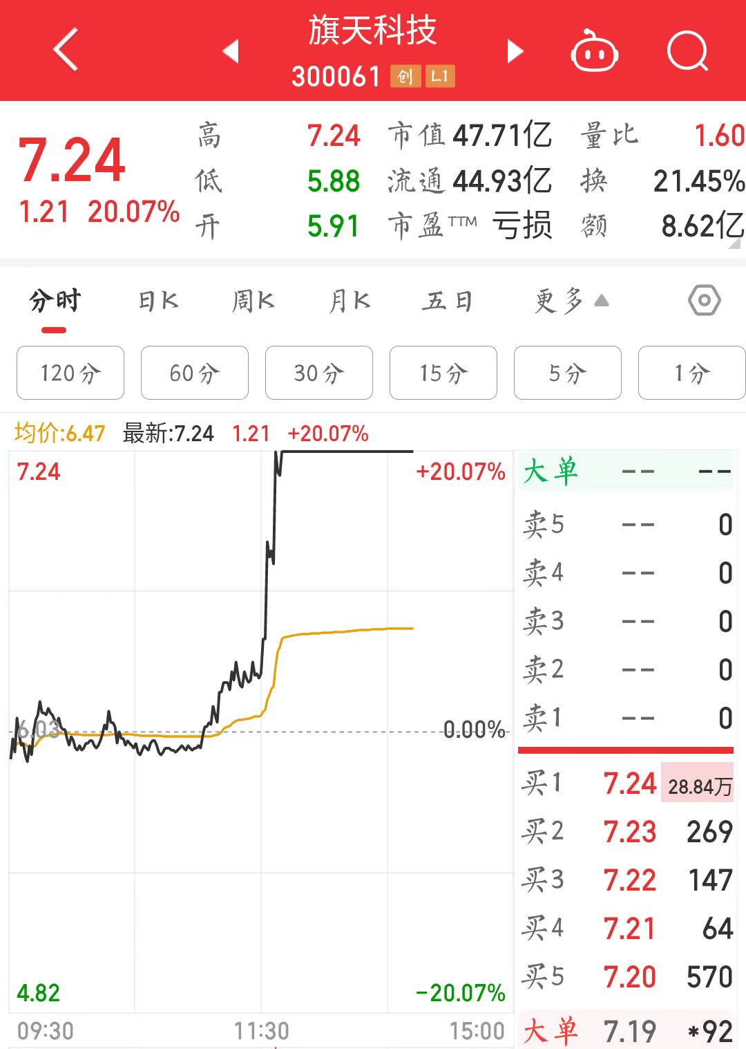 【大河财立方消息】8月20日,“黑神话悟空概念股”午后继续拉升,旗天科技20CM涨停,截至发稿,报7.24元/股。消息面上,旗天科技控股股东七彩虹联合英伟达,共同推出了《黑神话:悟空》定制版显卡,目前售价9199元。此外,另有多家A股游戏公司接连被“引爆”,截至发稿,中信出版、浙版传媒涨停,华谊兄弟一度涨停,致尚科技、利亚德也一度涨超10%。
