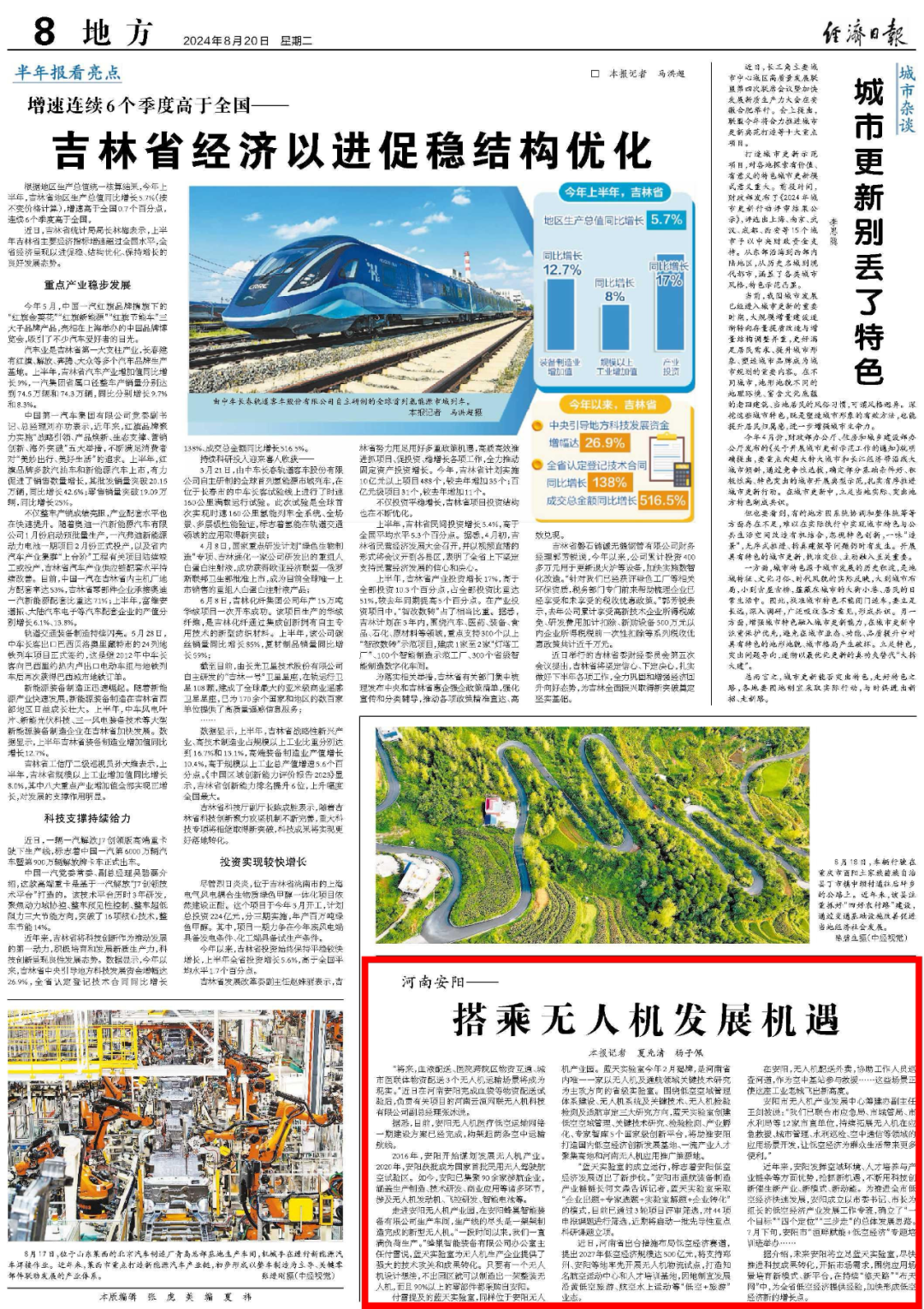在安阳,无人机配送外卖,协助工作人员巡查河道,作为空中基站参与救援……这些场景正使这座工业老城飞出新高度。