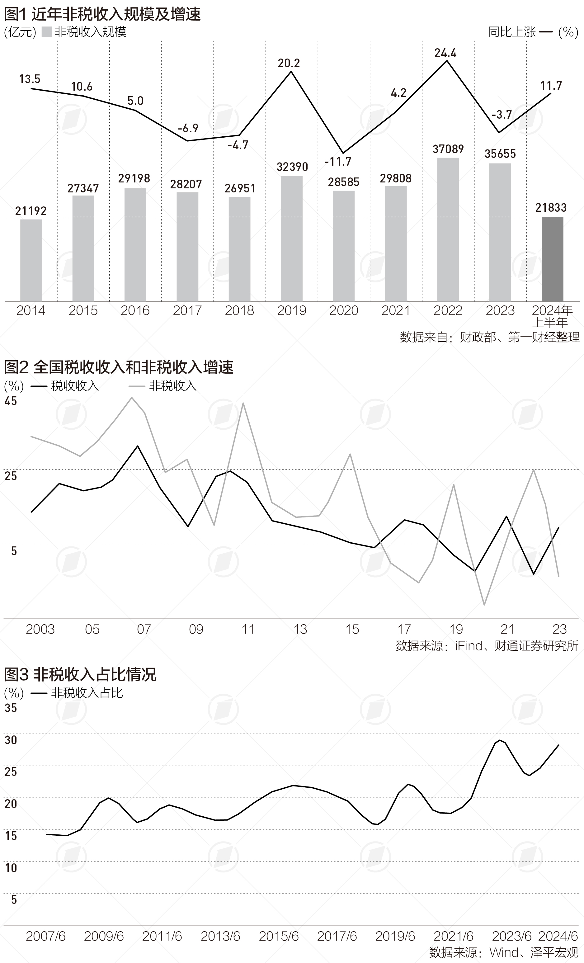 财通证券宏观首席分析师陈兴称,非税占财政收入的比重趋于提升,2023年这一占比达到16.4%。在税收增速乏力的年份,非税收入一定程度能起到平衡预算的作用。今年上半年非税收入增长对财力形成有力的补充。