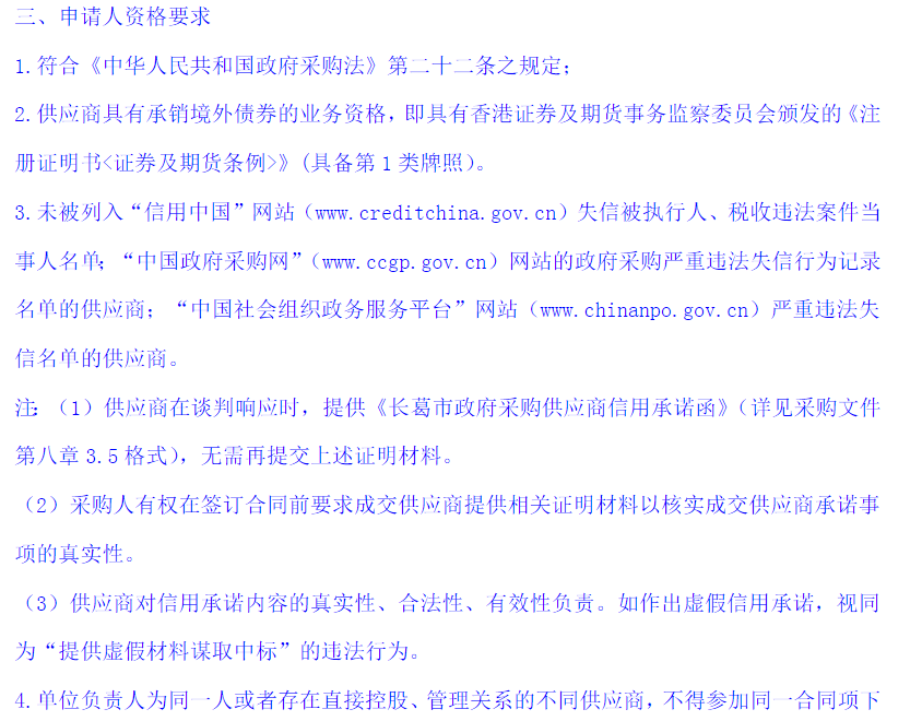 为加快推进长葛市重点基础设施项目建设,进一步拓宽融资渠道,同时也保障各项目融资贷款偿还的安全性。长葛城投公司计划通过竞争性磋商的方式选聘境外债券发行主承销商(全球协调人),负责发行不超过人民币10亿元(含)境外债券承销工作。