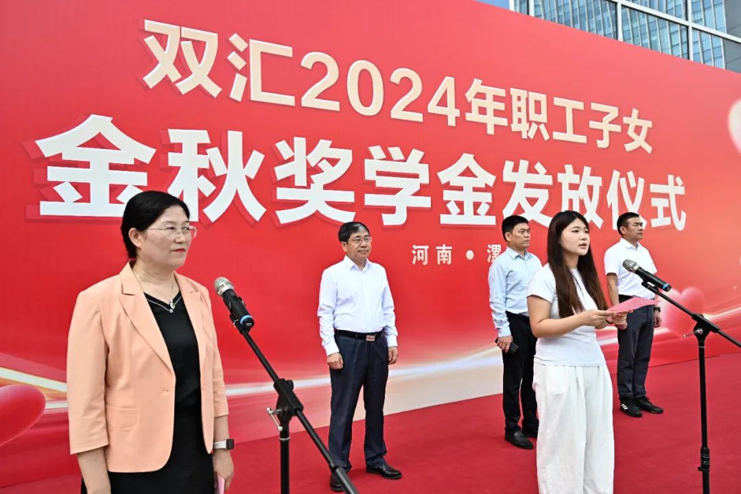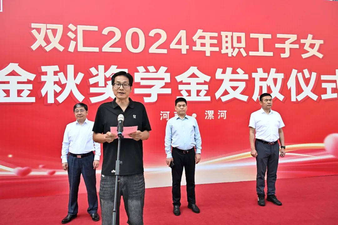 8月22日,双汇2024年职工子女金秋奖学金发放仪式在双汇总部大楼顺利举行。双汇发展总裁马相杰,党委书记、工会主席杜俊甫,副总裁周霄,工会副主席王晓玲及获得奖励的第一批职工子女等400余人参加仪式。