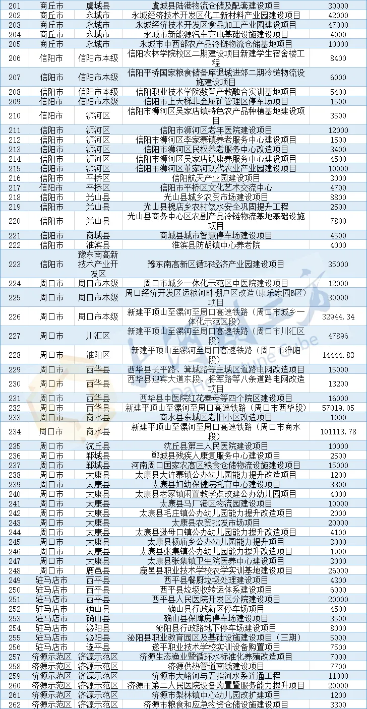 从项目清单看,有2个河南省本级项目,分别是信阳港固始港区中心作业区一期工程、新建平顶山至漯河至周口高速铁路(省本级段)。