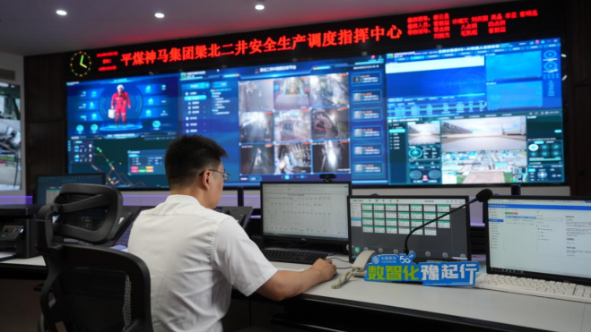 【大河财立方 记者 王楠 通讯员 裴浩鹏 牛锐飞 王静 文 冉衡 摄影】提起煤矿开采,许多人首先想到是井内作业情况与世隔绝,井下地面信息不畅。然而,在许昌禹州的河南平煤神马梁北二井煤业有限公司(以下简称“梁北二井”)的煤炭采掘现场景象却有所不同。安全生产调度指挥中心,井下生产情况一目了然,工人状态实时监测,指挥中心的电话中能清晰听到井下工人报备生产情况的声音……传统煤矿装上了“数智引擎”,这一生产场景正是其中的一个缩影。