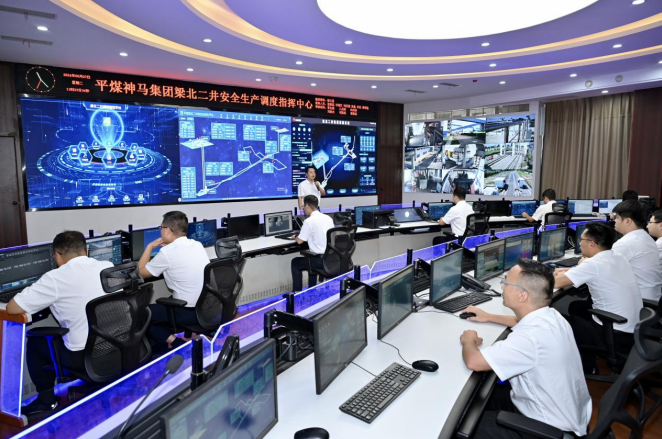 在梁北二井的安全生产调度指挥中心,大屏幕上实时展示着采掘工作面、水泵房、井下轨道电机车等关键区域的清晰画面,这些画面均通过5G网络传输而来,实现了对矿区的全面监控和精准调度。