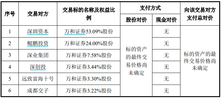 截至该预案签署日,万和证券的审计、评估工作尚未完成,标的资产评估结果及交易作价尚未确定。标的资产的最终交易价格将以符合规定的评估报告的评估结果为基础,经交易各方充分协商后确定。