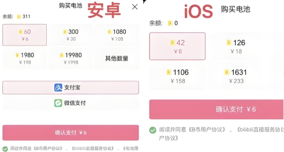某平台充值同样金额虚拟币,苹果和安卓端的实际区别