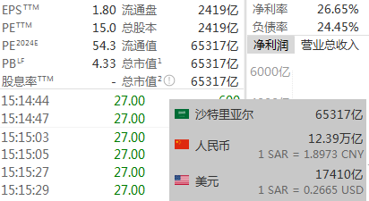 沙特阿美是世界上最大的综合能源和化学品公司之一,目前总市值约为12.39万亿元人民币。