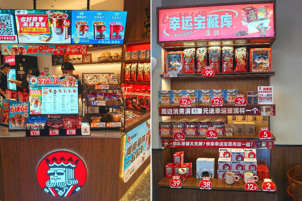 2024年春节后,幸运咖在河南乡镇开出多家门店。在投资方面,幸运咖依托乡镇的低房租和人工成本优势、价格亲民的半自动咖啡机,降低开店门槛,实现快速扩张;在门店运营方面,幸运咖延续了蜜雪冰城热闹的“卖货氛围”,通过设置收银岗放大人情味,通过充气拱门、抽奖等方式激活门店周边客流量;在产品定位方面,幸运咖持续推行“6块6”活动,使用IIAC金奖6国拼配豆、朝日唯品牛奶,真正做到了 “高质平价”。