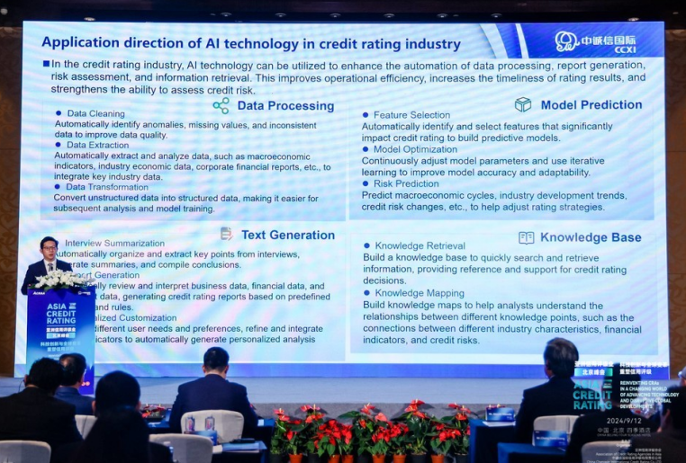 他表示,在信用评级行业,人工智能的应用同样展现出了巨大的潜力。它所具备的语义理解、文本抽取、逻辑推理和文本生成这些能力,在信用评级的整个作业流程中都有着重要的应用。