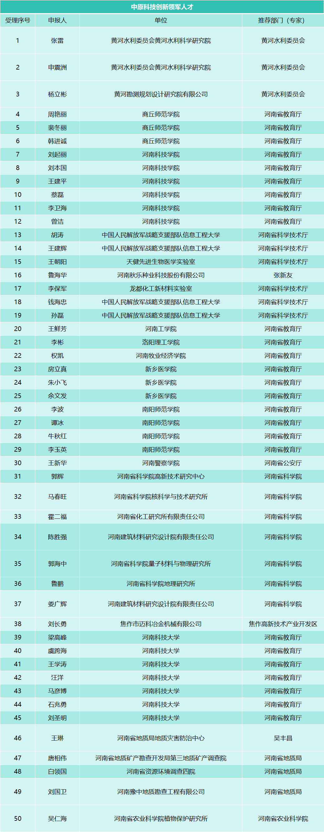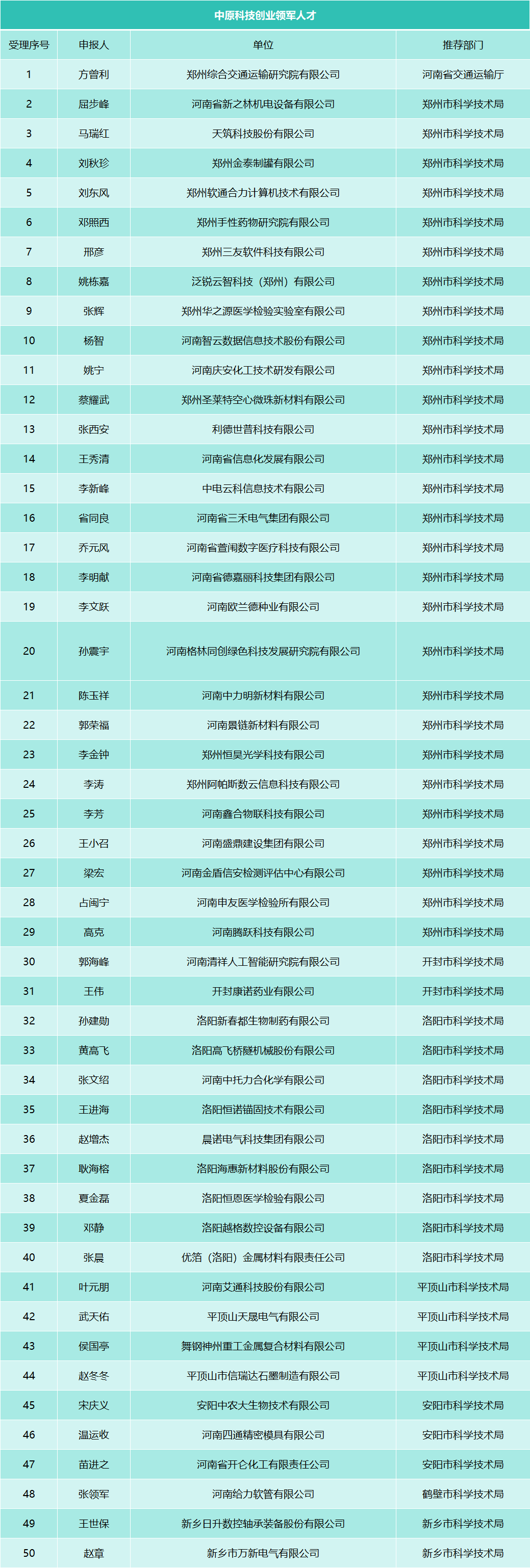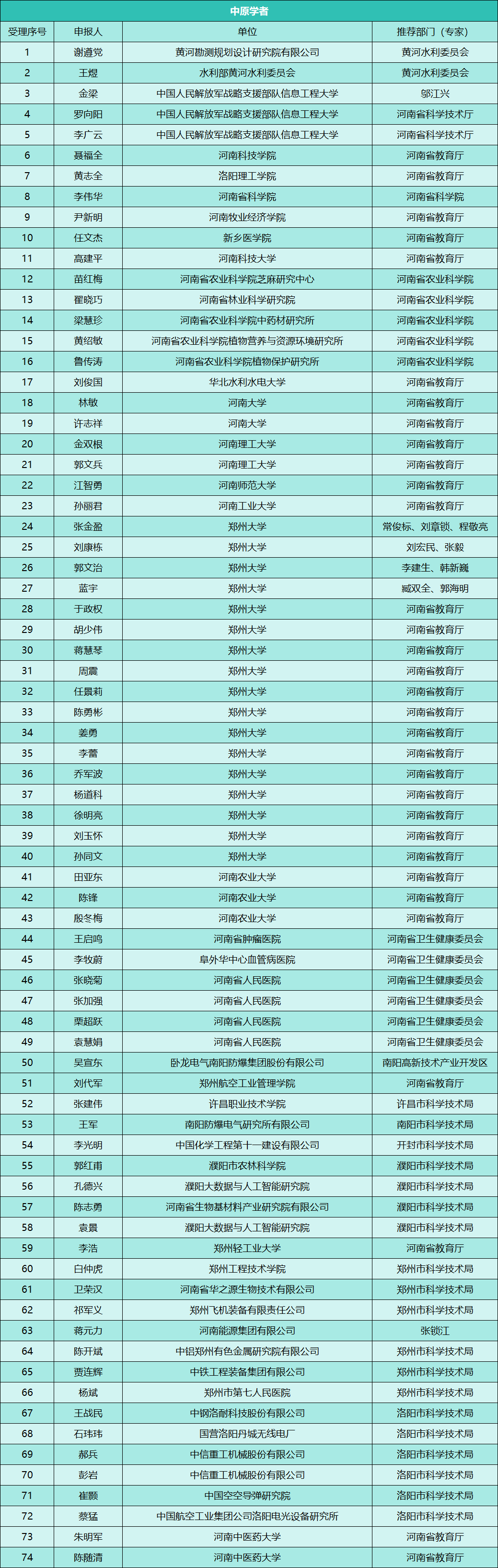 附:2024年度中原学者、中原科技创新领军人才和中原科技创业领军人才受理清单