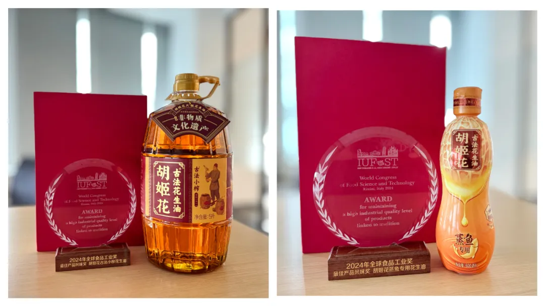 胡姬花古法小榨花生油、胡姬花古法花生油蒸鱼专用油荣获2024年全球食品工业奖最佳产品风味奖