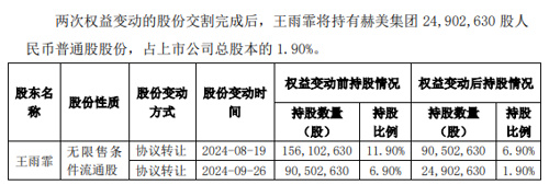 若上述两项交易都完成,王雨霏对公司的持股比例将从11.9%降至1.9%。