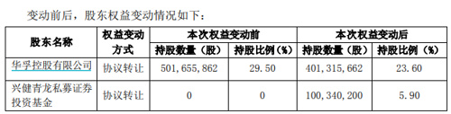转让完成后,华孚控股仍持有上市公司4.01亿股股份,占总股本的23.6%。