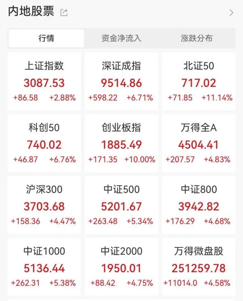 9月27日,上证指数收涨2.88%,逼近3100点;创业板指暴涨10%,成交额刷新历史天量。A股全天成交1.46万亿元,创3年新高。