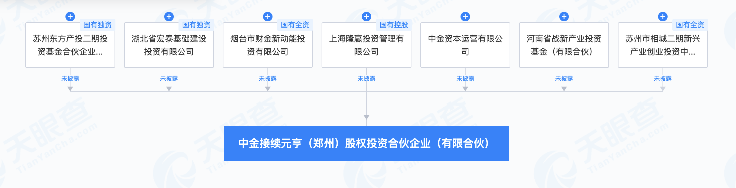 天眼查股权穿透信息显示,该基金由河南省战新产业投资基金(有限合伙)携手中金资本、烟台市财金新动能投资有限公司、上海隆赢投资管理有限公司、苏州市相城二期新兴产业创业投资中心(有限合伙)、湖北省宏泰基础建设投资有限公司、苏州东方产投二期投资基金合伙企业(有限合伙)共同设立。