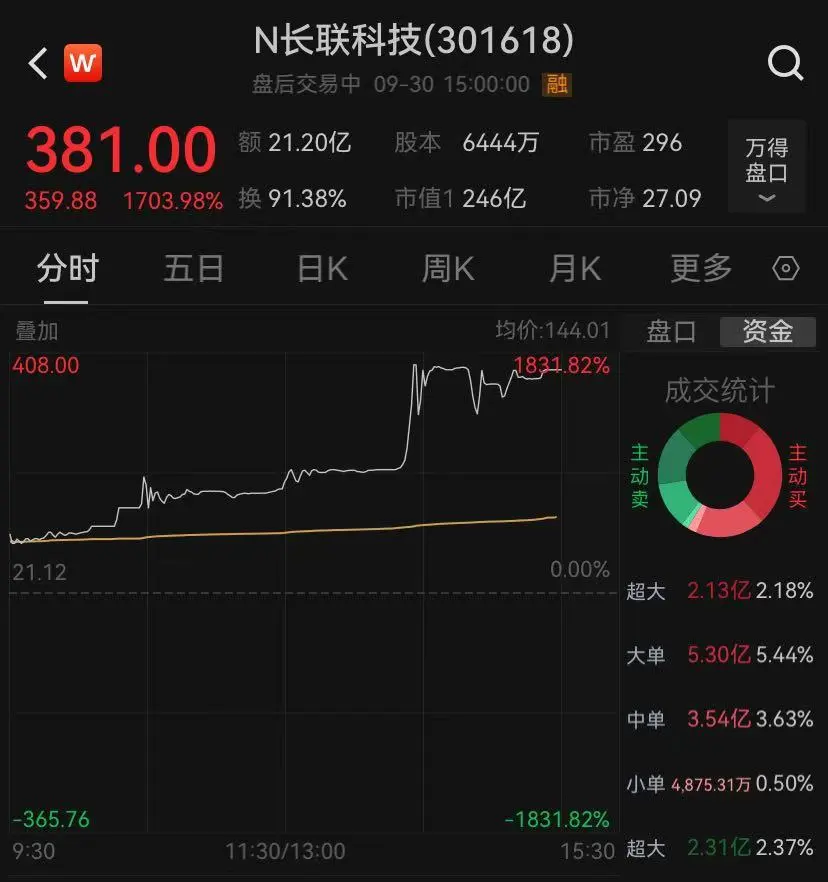 新股表现同样火爆,新股N长联(301618)涨超1700%,报381.00元/股,由于涨幅超过临停阈值,该股盘中两次临停。