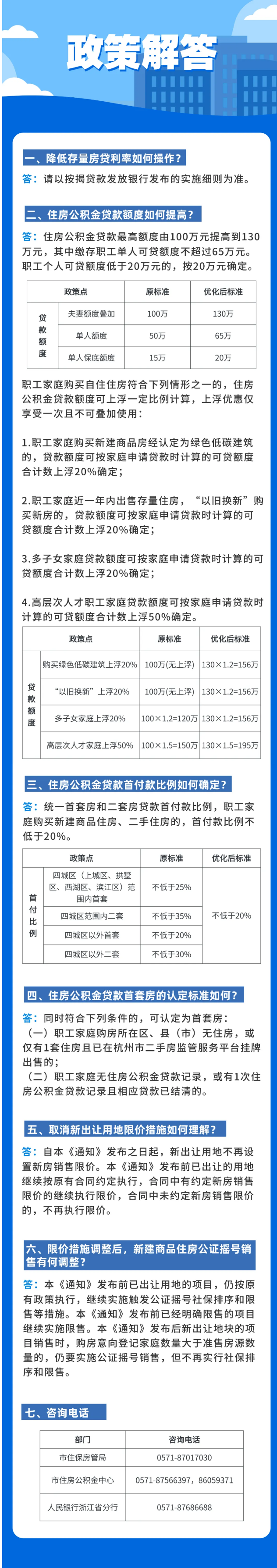 【大河财立方 记者 王宇 上海报道】10月9日,杭州推出楼市新政。其中提到,商业性个人住房贷款不再区分首套、二套住房,最低首付款比例统一为15%;住房公积金贷款最高额度提高到130万元;新建商品房全面取消限价。