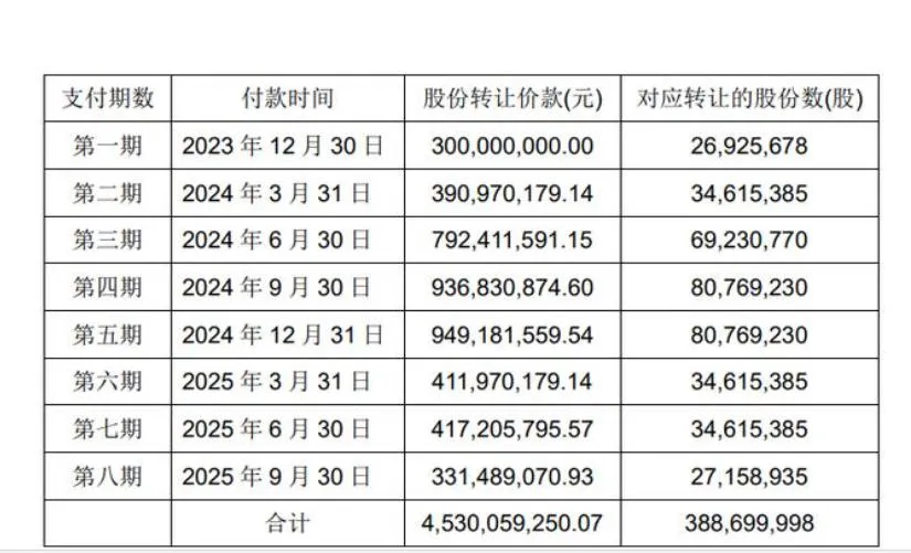 按照2023年12月永辉超市与大连御锦签订的《转让协议》,这笔交易交易资金由大连御锦分八期支付,整个交易要到2025年9月30日才全部转让完成,持续近两年时间。永辉超市每收到一期转让价款后,会办理针对该期转让价款所对应股数转股的交割手续。