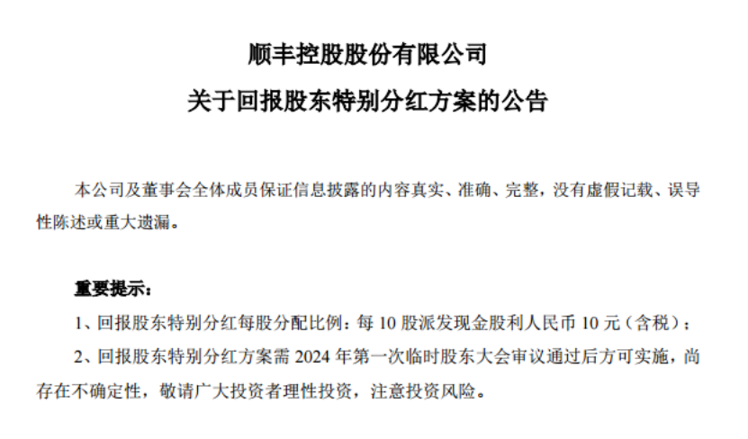 10月10日晚间,顺丰控股发布公告表示,公司启动了公开发行境外上市外资股(H股)股票并在香港联交所主板挂牌上市的相关工作,拟在本次发行上市前,对全体股东(即A股股东)实施一次性的特别现金分红。