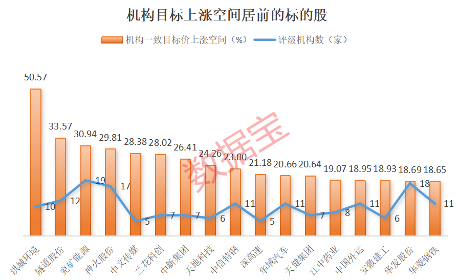 根据机构一致预测上涨空间来看,43股整体有望上涨超16%,洪城环境、隧道股份、兖矿能源有望超30%的涨幅。